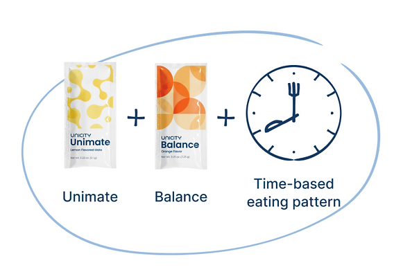 The Feels Great System is simple. Wake up and start the morning with a delicious Unimate. Take Balance 5 to 15 minutes before your meals and eat your regular food. No dieting, No counting anything.